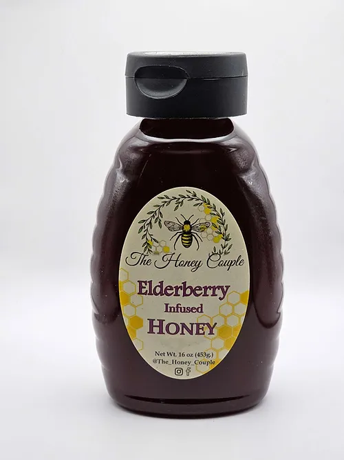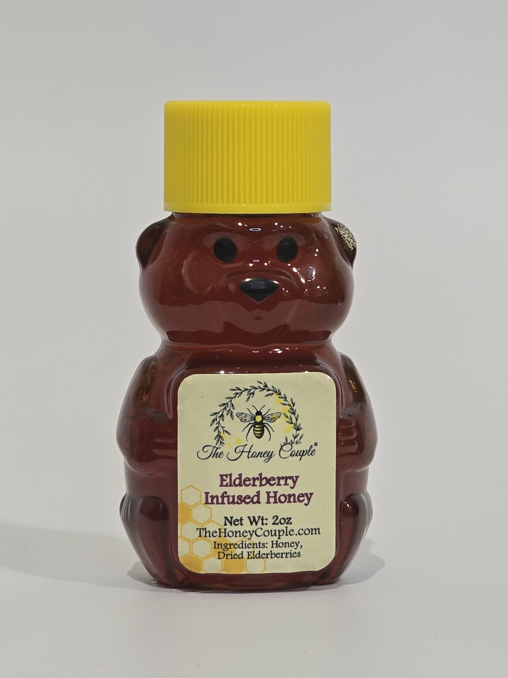 Elderberries infused into our wildflower honey. Amazing berry flavor pairs perfectly with tea, coffees and desserts. Also try with pancakes or waffles!